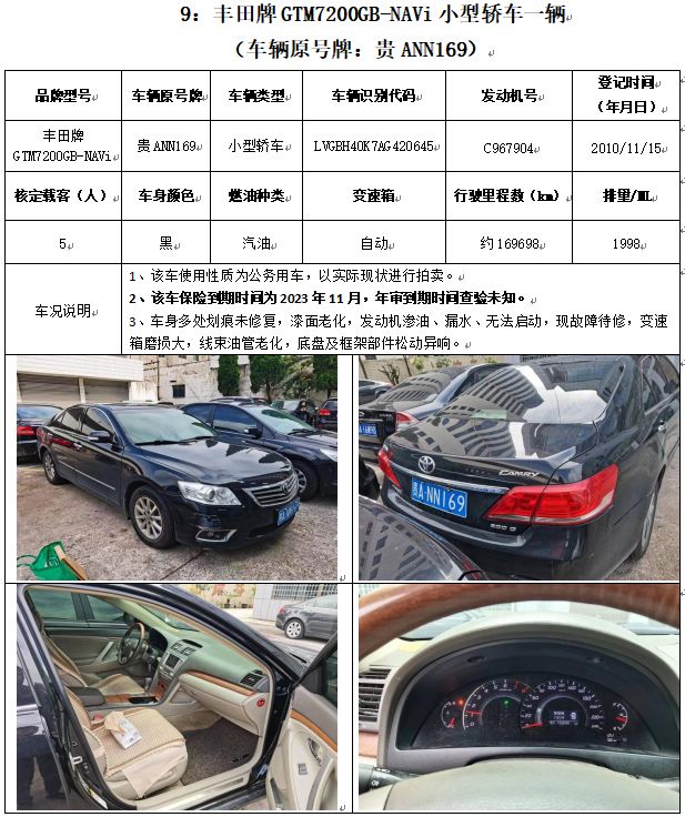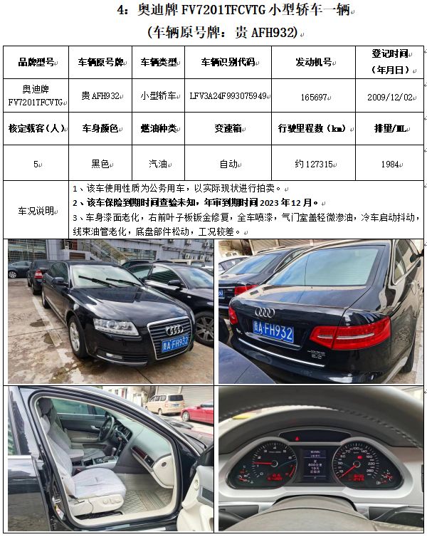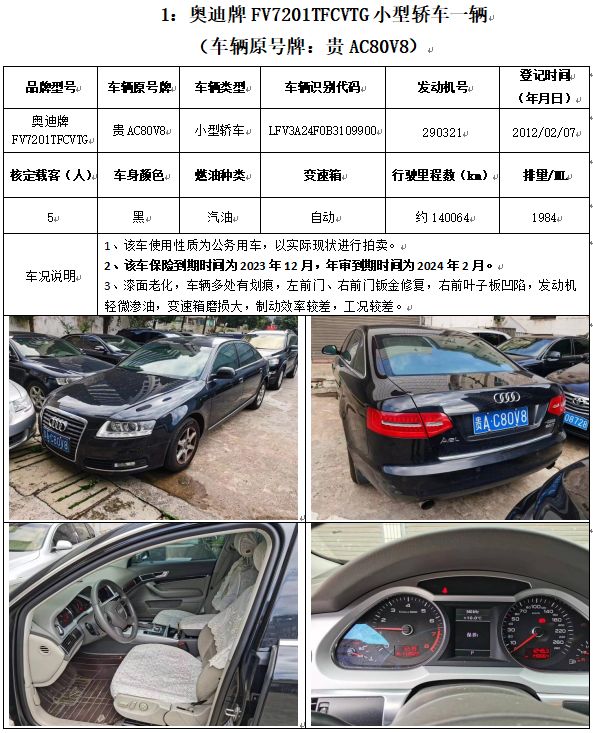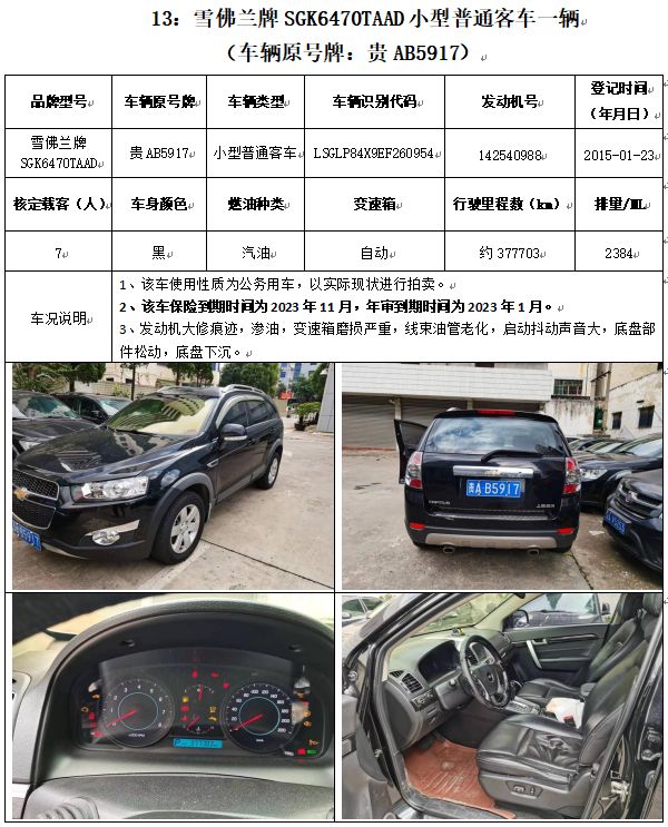 受委托,我公司定于2023年12月19日(星期二)下午15:00在貴州省貴陽市中華南路20號(hào)新大陸數(shù)碼廣場(chǎng)10樓D座會(huì)議室公開拍賣以下標(biāo)的: