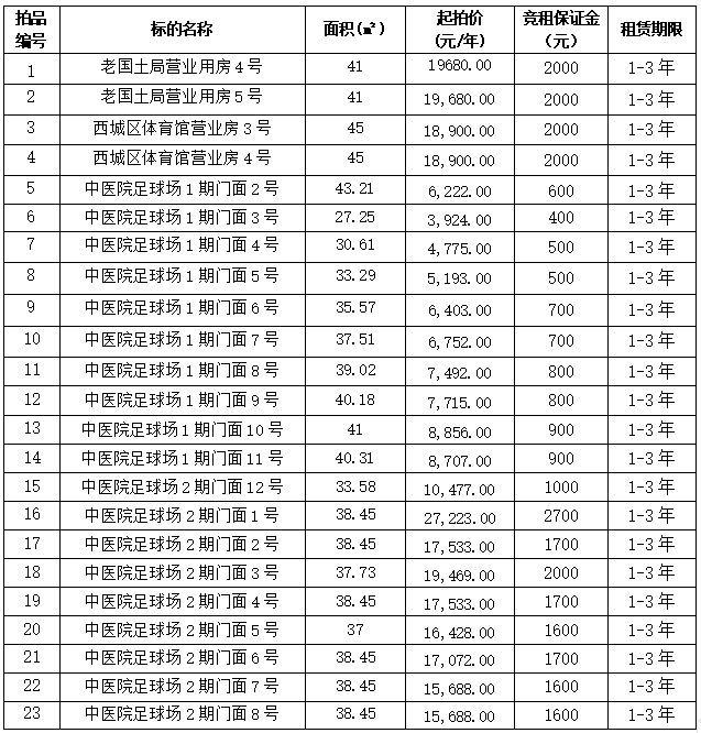 【已結(jié)束】遵義市習(xí)水縣老國土局營業(yè)用房,西城區(qū)體育館門面和中醫(yī)院對(duì)面足球場(chǎng)部分門面等經(jīng)營性資產(chǎn)拍租公告