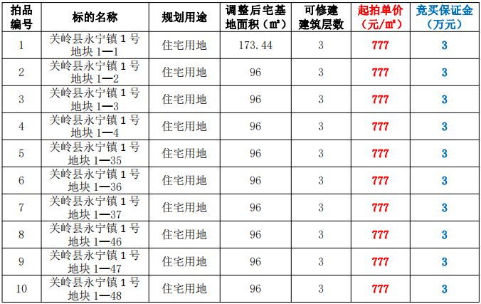 拍品編號1-10:關(guān)嶺縣永寧鎮(zhèn)1號地塊1—1至1—48