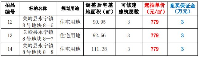 拍品12-14號:關(guān)嶺縣永寧鎮(zhèn)8號地塊8-6至8-8