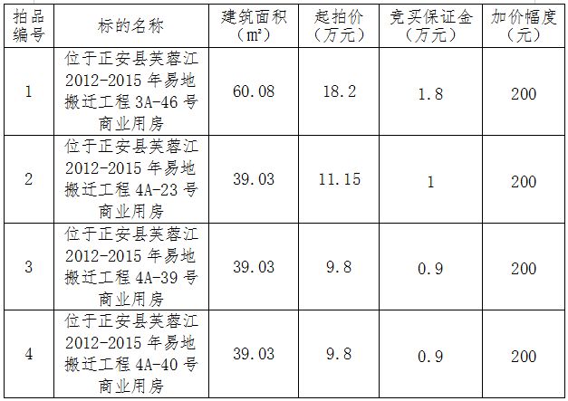 【07月31日】位于貴州省遵義市正安縣芙蓉江 2012-2015 年易地搬遷工程 3A-46 號、4A-23 號、4A-39 號、4A-40 號商業(yè)用房拍賣項目電子競價公告