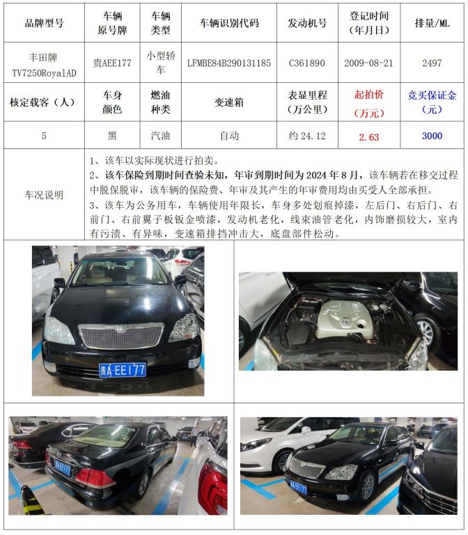 3、豐田牌TV7250RoyalAD小型轎車1輛;