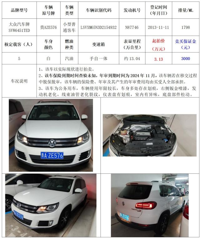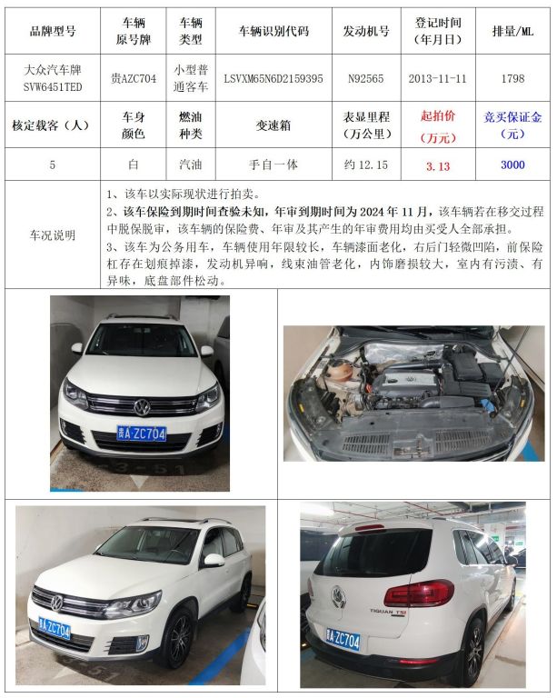 拍品編號3:大眾汽車牌 SVW6451TED小型普通客車1輛