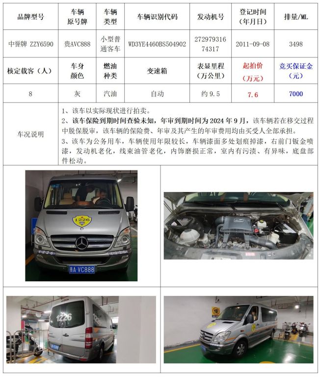 拍品編號7:中譽牌 ZZY6590小型普通客車1輛