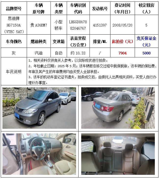 拍品編號1:思迪牌HG7150A(VTEC5AT)小型轎車一輛