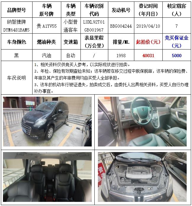 拍品編號2:納智捷牌DYM6481BAM5小型普通客車一輛