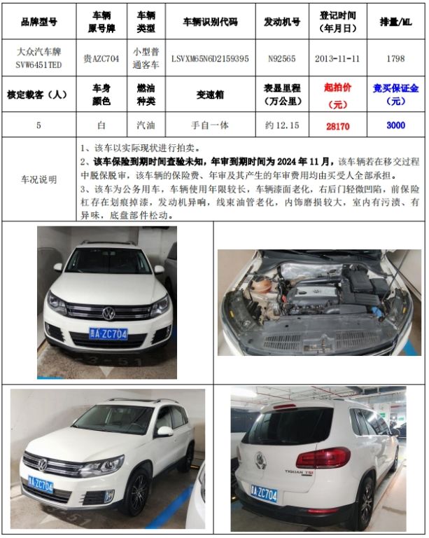 【11月28日】大眾牌、豐田牌、金龍牌等機動車拍賣公告