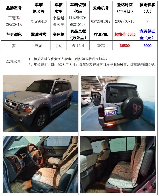 拍品編號6:三菱牌CFA2031A小型越野客車一輛