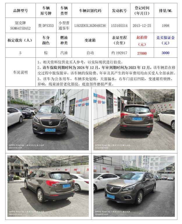 拍品編號1:別克牌 SGM6475DAX2小型普通客車1輛