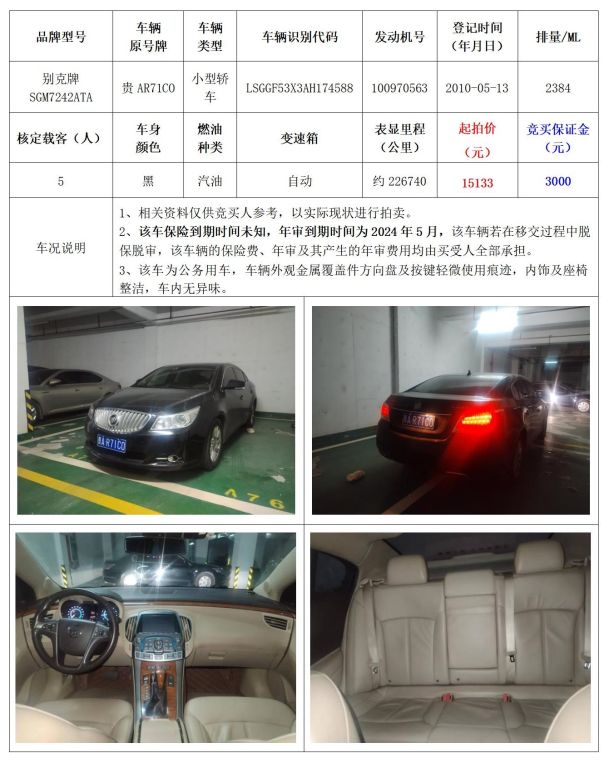 拍品編號3:別克牌 SGM7242ATA小型轎車1輛