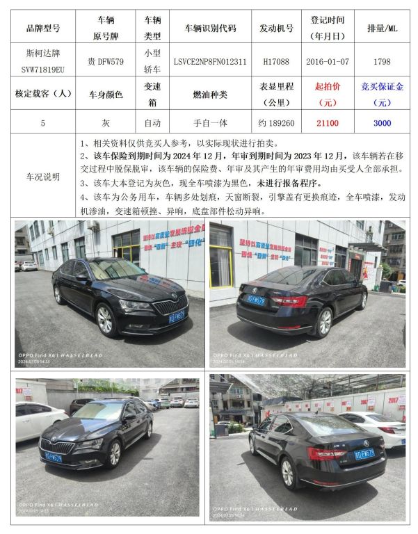 拍品編號2:斯柯達(dá)牌 SVW71819EU小型轎車一輛