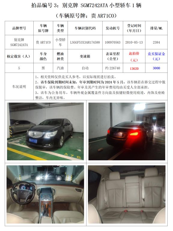 1、別克牌SGM6475DAX2小型普通客車1輛;
