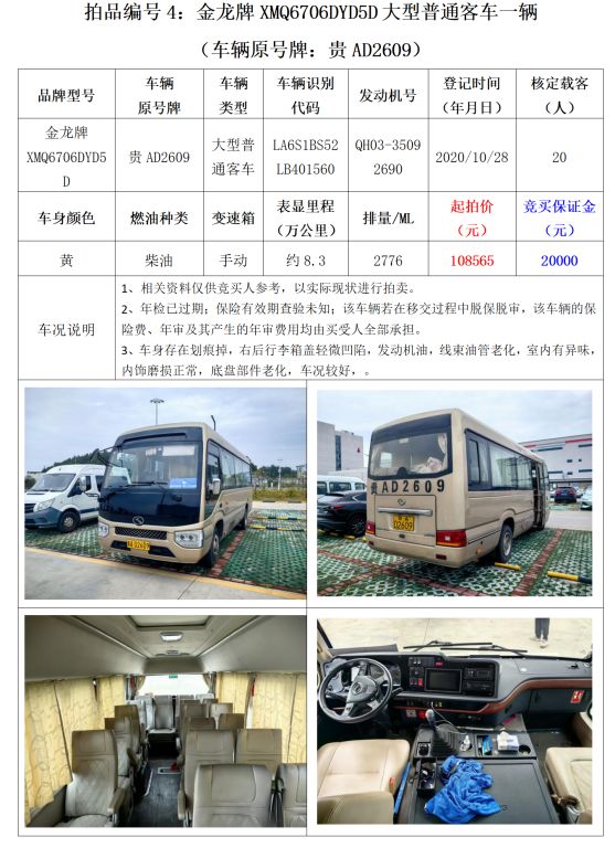3、金龍牌XMQ6706DYD5D大型普通客車1輛。