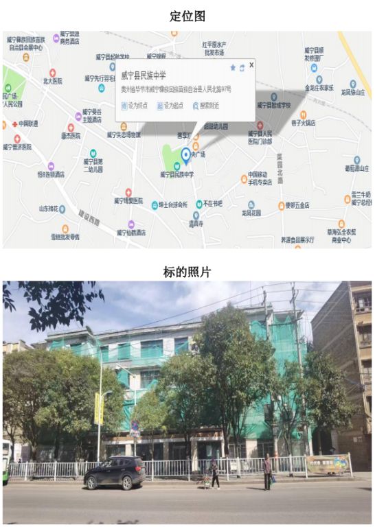 標的坐落于威寧縣草海鎮(zhèn)人民北路18號稱為1號樓、2號樓和3號樓的三項房屋,房屋建筑面積為:2759.76㎡,混合結(jié)構(gòu),房屋總層數(shù)為4層,拍賣標的所在層數(shù)為1-4層,產(chǎn)權證號:威房權證草海鎮(zhèn)字第00007730號,設計用途為營業(yè)。土地證號:威國用(2009)第133號,地類(用途):辦公用地,使用權類型:作價出資,使用權面積:1854.70㎡。