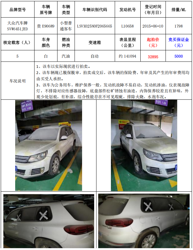 拍品編號7:大眾汽車牌SVW6451JED小型普通客車1輛