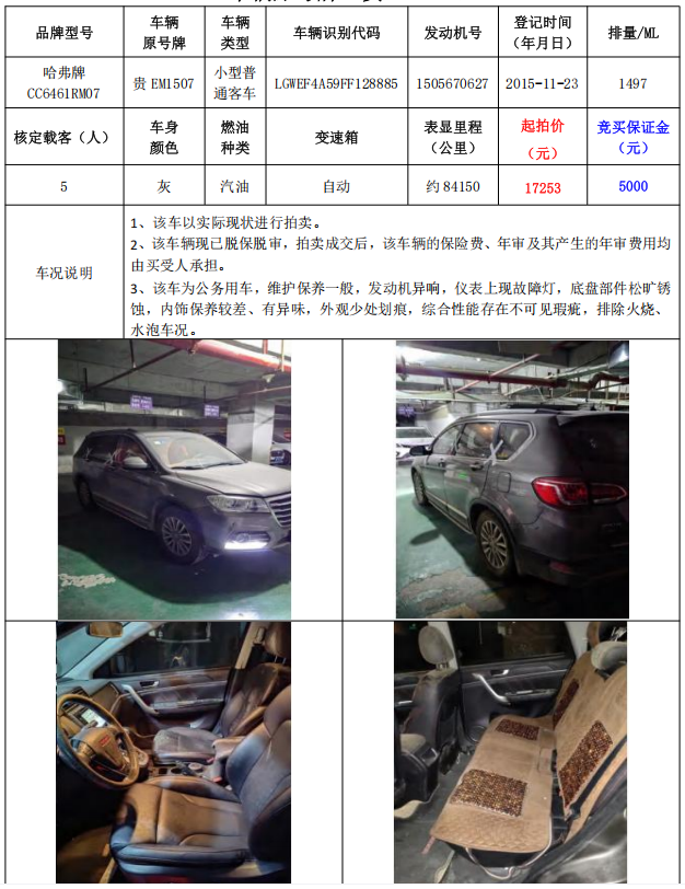 拍品編號6:哈弗牌CC6461RM07小型普通客車1輛