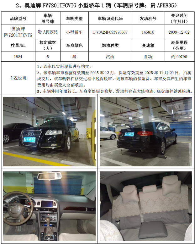 普瑞維亞小型普通客車1輛、奧迪牌小型轎車2輛、昂科雷小型越野客車2輛,共計(jì)5輛,整體拍賣。