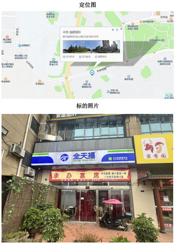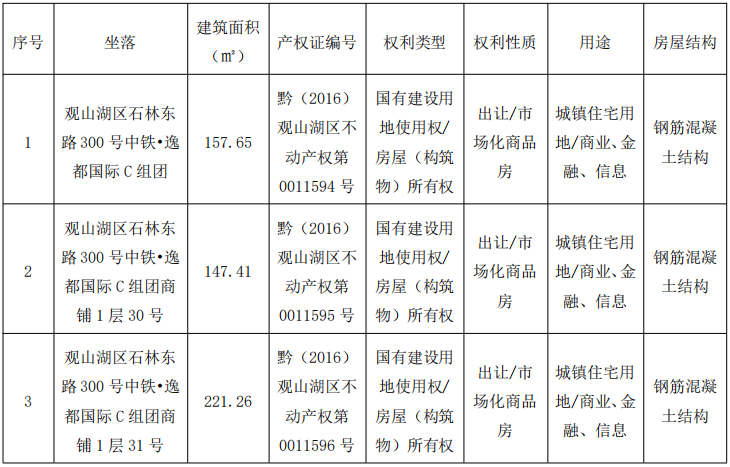 拍品編號1:貴陽市觀山湖區(qū)石林東路300號中鐵·逸都國際C組團商鋪、1層30號商鋪、1層31號商鋪,共計3間,整體拍賣