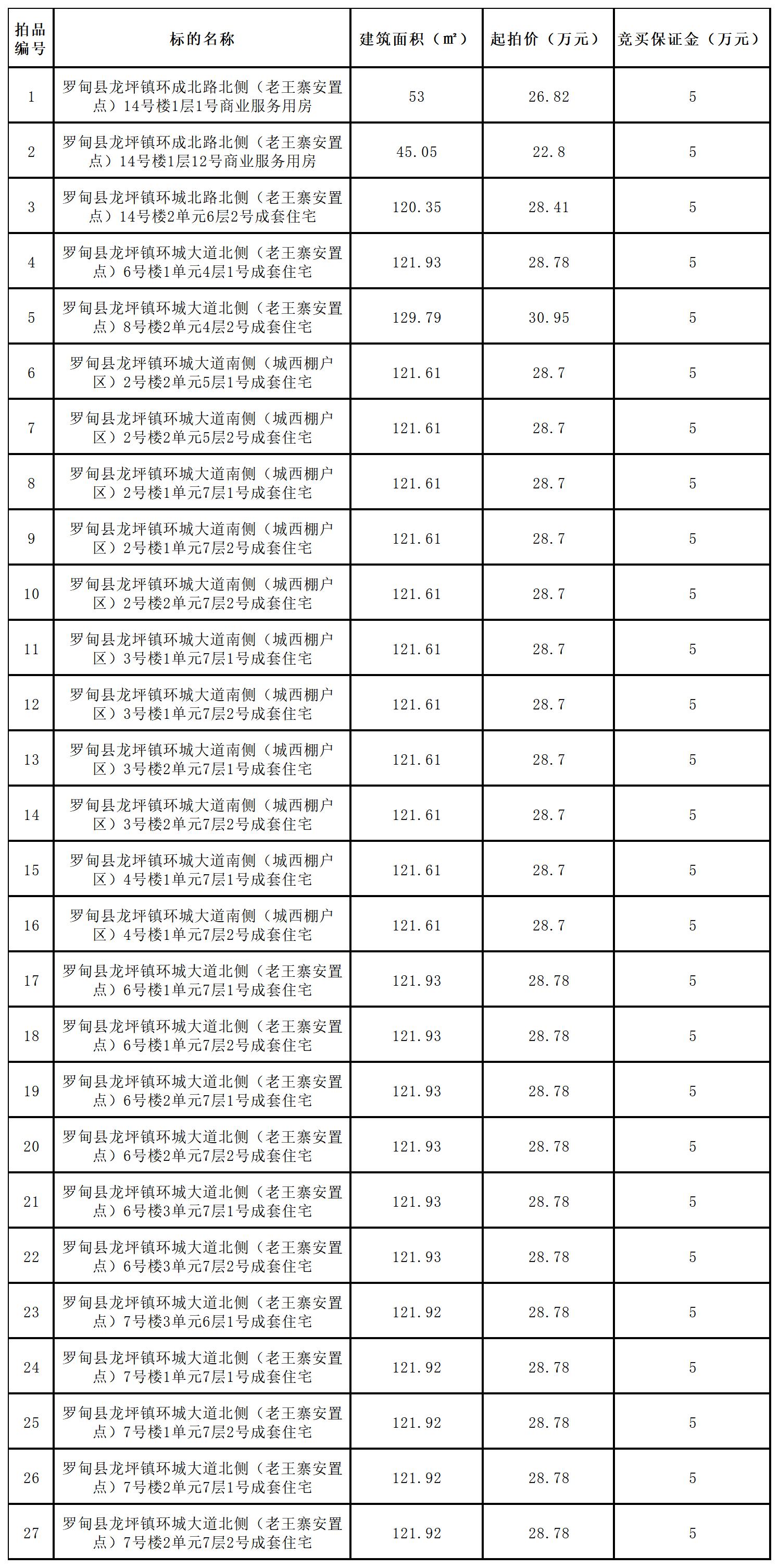 【01月09日】羅甸縣龍坪鎮(zhèn)環(huán)成北路北側(cè)和環(huán)城大道北側(cè)(老王寨安置點(diǎn))、環(huán)城大道南側(cè)(城西棚戶區(qū))商業(yè)服務(wù)用房、成套住宅 拍賣公告