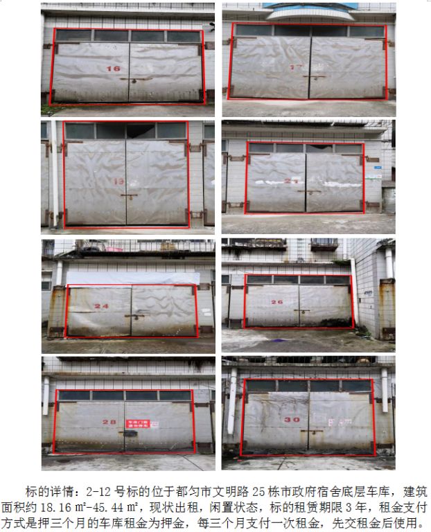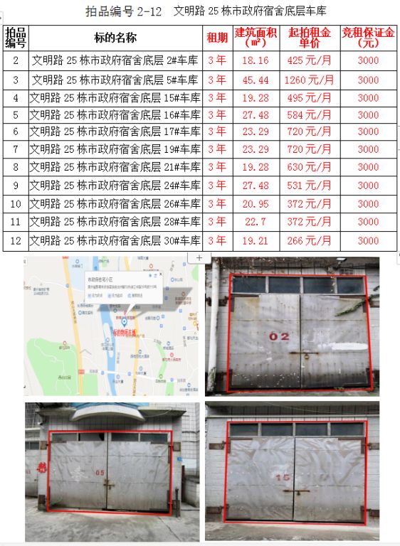 2、都勻市文明路25棟市政府宿舍底層車庫11間3年租賃權(quán)(面積約18.16㎡-45.44㎡);