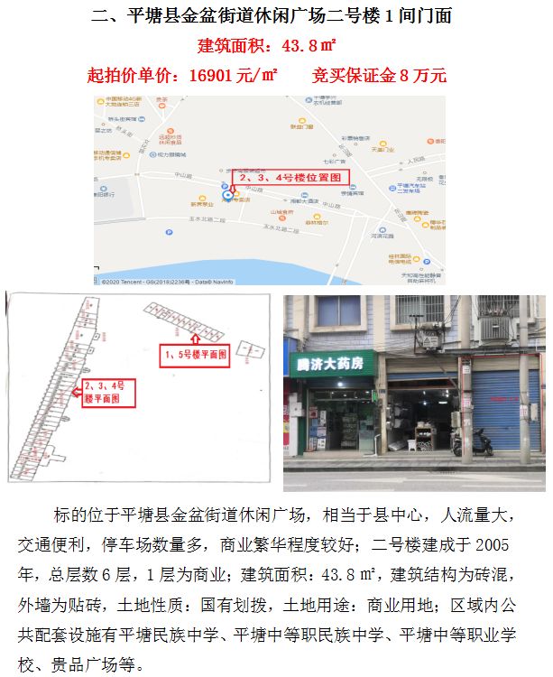 一、平塘縣金盆街道休閑廣場一號樓2間門面(建筑面積:156.37㎡-253.13㎡)
